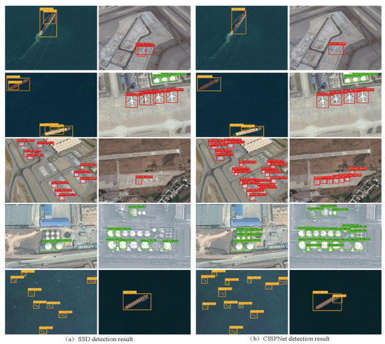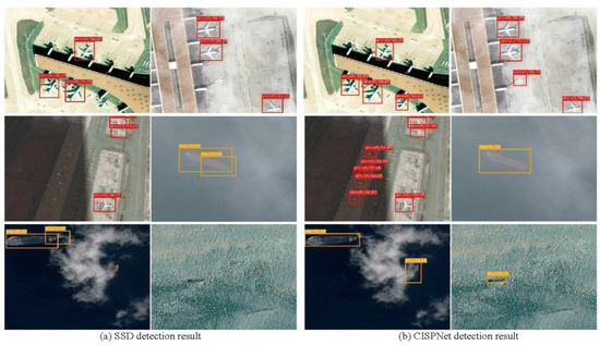 In order to compare the detection performance of CISPNet and SSD for the remote sensing images in an intuitive manner, as shown in