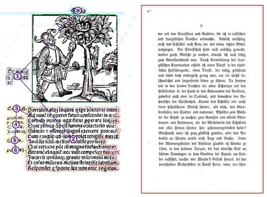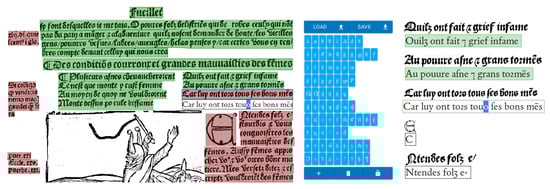 While Optical Character Recognition (OCR) is regularly considered to be a solved problem [], gathering the textual content of historical printings using OCR can still be a very challenging and cumbersome task [], due to various reasons. Among the problems that need to be addressed for early printings is the often intricate layout containing images, ornaments, marginal notes, and swash capitals. Furthermore, the non-standardized typography represents a big challenge for OCR approaches. While modern fonts can be recognized with excellent accuracy by so-called omnifont or polyfont models, very early printings like incunabula (books printed before 1501), but also handwritten texts usually require book-specific training in order to reach Character Error Rates (CERs) well below 10% or even 5%, as shown by Springmann et al. [] (printings) and Fischer et al. [] (manuscripts). For a successful supervised training process, the Ground Truth (GT) in the form of line images and their corresponding transcriptions has to be manually prepared as training examples.
