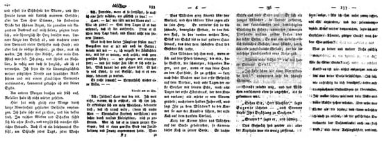 As our first experiment has shown, the segmentation step can be considerably more time consuming than OCR, even when aiming for very low CERs. However, the required manual work to segment a book can be severely cut down when the aspirations regarding semantic classification are less strict. Therefore, we conducted another experiment where the single goal of the segmentation was to provide the subsequent OCR with the means sufficient to produce the required output. Apart from a clean text/non-text separation, this also includes ensuring the correct reading order. Figure 11 shows the desired results.