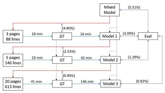 - The available mixed models work reasonably well on the majority of books, achieving an average CER of 7.7% on the corpus we used for our evaluations. However, since this is probably not good enough for most use cases, book specific training is necessary. Additionally, the CERs varied considerably, ranging from below 2% to over 25% on the new GT of the first iteration of each book, underlining the problem of mixed models we discussed before.