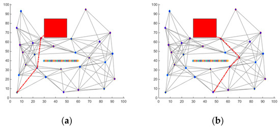If the reward signals can be detected in the step range, the value of the reward signals will increase according to Equation (12). With each step, all nodes update their reward signals. The direction with the maximum sum of reward signals will be chosen.