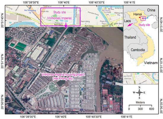 Since ANN is a supervised machine learning approach, a set of experimental data with observed CC values needs to be collected to train the CC prediction model. In this study, 441 samples of soil with 12 properties were collected during the construction phase of the Vinhomes housing project (Hai Phong city, Vietnam) in 2016. The study area ha illustrated in Figure 2. The 12 soil properties include sample depth (X1), sand percentage (X2), loam percentage (X3), clay percentage (X4), moisture content (X5), wet density (X6), dry density (X7), void ratio gravity (X8), liquid limit (X9), plastic limit (X10), plastic index (X11), and liquid index (X12).