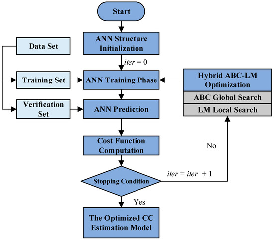 To train the ANN model using the ABC-LM algorithm, the following cost function (CF) is used to minimize the discrepancy between the observed and the predicted output of CC: