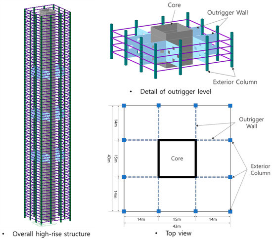 With the development of tall building structures, the outrigger system has become one of the most popular structural systems that control the lateral displacement of such buildings. Several researchers and engineers have been studying and developing the outrigger system because it performs well in controlling the lateral displacement at the top of a tall building by reducing the overturning moment [1]. For example, the Shanghai Tower, Hong Kong IFC2, and Taipei 101 are successful applications of the system in tall buildings [2]. Most of the previous research studies focused on the optimum location of outriggers and lateral stiffness of the whole structure. Taranath [3] assumed a rigid outrigger beam for single-outrigger structures, and proposed that the optimum location of an outrigger is 0.455 of the total height from the top. McNabb and Muvdi [4] proposed that the optimum locations for two outriggers are 0.312 and 0.685 of the total height from the top based on Taranath’s research. Smith and Nwaka [5] presented generalized results for optimum locations in multi-outrigger structures by assuming rigid outriggers in flexure. Smith and Salim [6] proposed equations for the optimum locations of outriggers by considering their flexibility. Hoenderkamper and Bakker [7] considered the bending and racking shear stiffness of the outrigger truss to determine the optimum location of the outrigger. The research studies on outrigger-braced structures have been summarized and some further studies have been attempted by Wu and Li [8]. Recently, Kim et al. [9] proposed a dual-purpose outrigger system to reduce the lateral displacement and differential column shortening.
