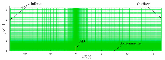 Mesh configuration for the Actuator Disc/Navier-Stokes (AD/NS) simulations.