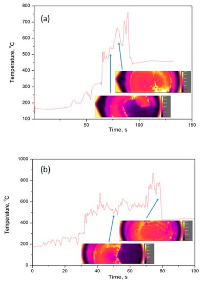The temperature evolution during SCS and the temperature of the combustion wave were monitored in situ with a high-speed infrared camera (model A655SC, FLIR Systems, Wilsonville, USA).