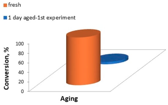 Influence of the effect of aging on the conversion of maleic acid in the Ni nanocatalyst produced by SCS (at 80 °C).
