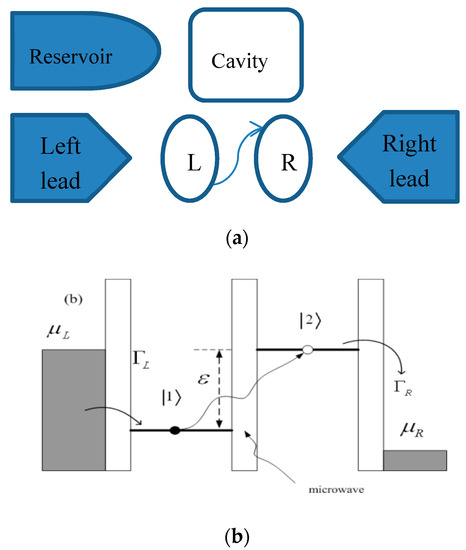 As shown in Figure 1b, the left chemical potential of lead is higher than that of the lead on the right. The total Hamiltonian of the whole system can be written as () [39]