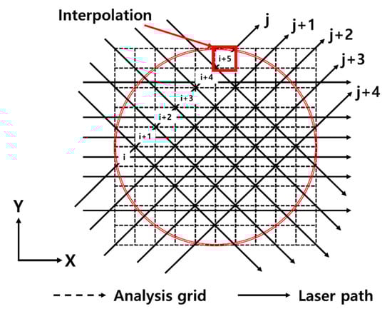Here, j1 and j2 are laser beams passing through each cell. The CSLOS method considers the length of laser path compared with the SLOS method. In the case where there is a lot of information on intersecting lasers, the more accurate initial temperature can be calculated.