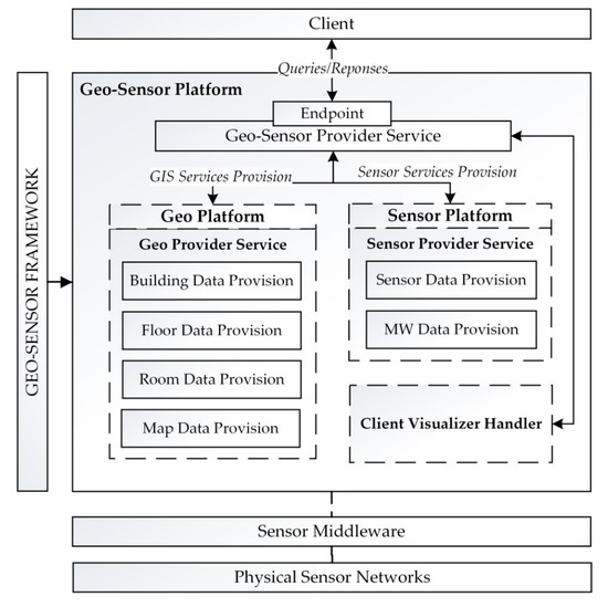 A geo-sensor profile is composed of building information, floor information, and room information with marks on a map image representing the geographical location of the physically installed sensors. It also contains the physical sensor mappings for the virtual platforms and detailed sensor information. The geo-sensor profile provides the geo-sensor query functionalities as add geo-sensor network data, access geo-sensor network data, update geo-sensor network data, or delete geo-sensor network data.