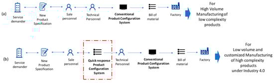 (a) Conventional product configuration system; (b) required quick-response product configuration system under Industry 4.0.