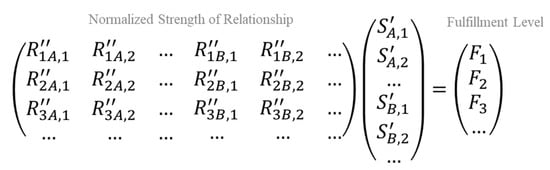 This portion generates the fulfillment level of CRs as an expression of the selection of part and the normalized strength of relationship in HOQ for the subsequent process.