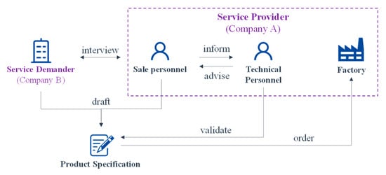 Company B is a laptop retailer, which is supplied mainly by Company A. In their standard collaborative process, individual consumers visit the outlet of Company B, expressing their needs to the sales personnel of B and hoping to obtain a desirable product. If their needs are beyond the existing products available in shops, the sales personnel would inform the procurement team to place the customized order. The procurement team would then engage Company A’s sales personnel for an interview to discuss the cost and feasibility of the customization. At this point, A’s sales personnel would also seek technical advice from their technical personnel to validate the feasibility. Along with this communication chain, information might be misaligned sometimes. A diagram is developed to enhance the understanding of this communication chain, as shown in Figure 6.