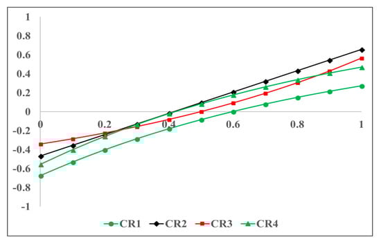 The expression of one-dimensional CSs follows a linear function, . The expression of positive or must-be CSs follows a smooth nonlinear function, . Overall, this is a nonlinear optimization model. It cannot be solved by a linear programming algorithm. Instead, it can be solved by the generalized reduced gradient (GRG) method developed by Lasdon et al. []. The GRG method can be considered as a nonlinear extension of the Simplex method, which solves a linear optimization problem by selecting a basis, determining a search direction, and performing a line search on each iteration. The GRG method computes or approximates derivatives of the problem functions many times during the course of the optimization. It is robust to process the nonlinear objective function and constraints. In this research, Excel 2016 and Visual Basic for Applications (VBA) were used for the coding of the problem formulation.