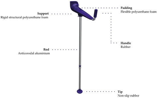 - Fischer, J.; Nüesch, C.; Göpfert, B.; Mündermann, A.; Valderrabano, V.; Hügle, T. Forearm pressure distribution during ambulation with elbow crutches: A cross-sectional study. J. Neuroeng. Rehabil. 2014, 11, 61. [Google Scholar] [CrossRef] [PubMed]