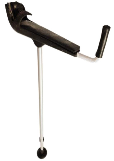 - A fall alarm positioned between the forearm support and the rod, which sends a signal if the crutch falls, and it is not picked up for a prolonged time.
