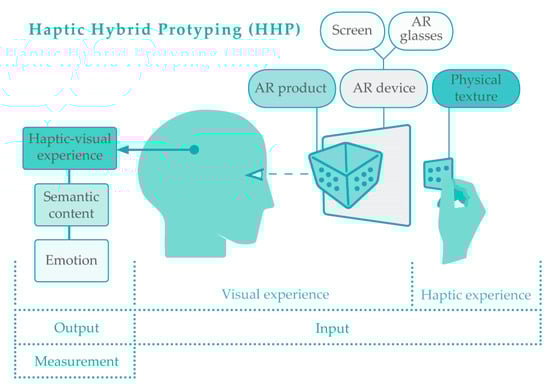This article studies the development of a method that combines haptic and visual experience with the aim of transmitting a certain message. For this purpose the concept of HHP is created, a method that aims to shorten the product design phase in the early stages, reducing costs and making the process more efficient. The development of this method, based on the AR technique, provides a methodology that serves as a means of validating textures or reliefs and ribs from simulation by finite elements. This is a methodology that serves to test the solutions, to meet the communication needs of users, that reduces costs and prototyping times, eventually using additive manufacturing techniques. Figure 1 outlines these five ways leading to the justification and creation of HHPs.
