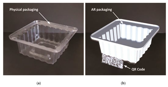 Images of the experiment: (a) Image of the real packaging and (b) packaging in augmented reality (AR) superimposed with the real one.