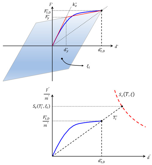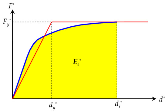 - The area (Em*) under the capacity curve corresponding to the limit point (the maximum force of the capacity curve, which is the pair dm*, Fm*) is determined using Equation (13) with .The initial stiffness of the idealized elastic-perfectly plastic structural system will be equal toInstead of computing through Equation (A2) in the developed computer routines it is also possible to obtain this stiffness for a given percentage of the force , as presented in the technical instructions of the NTC2018.Figure A1. Flowchart of the developed algorithm for the iterative N2 method.