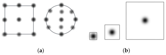In general mid-air devices deliver haptic feedback as points located over the own device. This happens in both ultrasonic (e.g., Ultrahaptics) and air-vortex-ring based devices. Hence, that point is the basic representation unit. Due to the technology in use to provide the feedback, points may not be perceived by the user as a sharp point. Instead, it may perceived more as an air field centered on that point with a diffuse radius. Figure 1 illustrates this issue. In the left side of the figure appears a “sharp” point with well-defined limits. In the right side, a situation similar to the one perceived with the Ultrahaptics is represented [33].