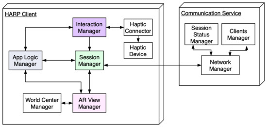 - The Session Manager component acts as an entry point into the system. As its name indicates, it is in charge of managing the session information, which, briefly recalling, includes information of the 3D objects to be represented by combining AR and haptics. It is capable of receiving the status of the session from the Communication Service and of generating and updating it.