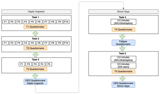 In this Section, the results of Task 4 and the Simon prototype are presented. The operating mode of the haptic buttons is as follows. The haptic point representing a button is suspended at a certain height above the Ultrahaptics. Once the user has positioned their hand there, the haptic feedback starts. However, at that moment, the button has not yet been pressed. For this to happen, the user has to move the hand down a certain distance (which simulates a physical button) and, only then, the button is pressed and a musical note sounds. When asked, 42.9% of participants stated that haptic feedback did not help at all when pushing the AR buttons and 42.9% stated that it helps to some extent. Participants liked most the fact that it was a fun game and that it is something innovative. However, most users have expressed difficulties when operating with HARptic buttons. A particular user indicated that, when his hand approached the button’s position, he began to receive haptic feedback, so he thought it was already pressed. However, it was not like that, and he discovered that he had to push a little more than he found intuitive. Although other users have not mentioned it, the same behavior has been observed. As soon as they receive the haptic feedback, they assumed that the button wars already pressed.
