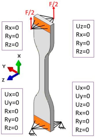Scheme of the numerical specimen with the boundary conditions.