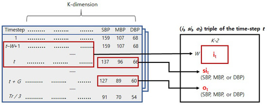 matrices into a shape for the real-time sequential prediction of future blood pressure as follows. First, for each