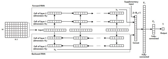 27] that is one of the most widely used RNN cells. The most important aspect of the RNN cell is that it remembers previously observed information. Although the RNN cell must be capable of preserving every previous information theoretically, it loses long-term information practically. The GRU is one of solutions to settle such issue by two types of gates (i.e., an update gate and a reset gate). These two types of gates help to preserve important long-term information while discarding unnecessary information. Thanks to the GRU cells, the bidirectional RNN layers give two vectors (e.g.,