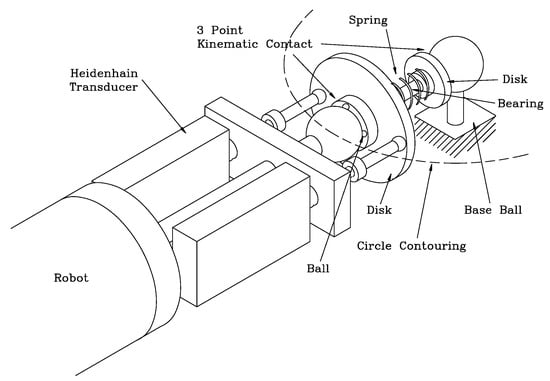 - Oh, Y.T. Robot accuracy evaluation using a ball-bar link system. Robotica 2011, 29, 917–927. [Google Scholar] [CrossRef]