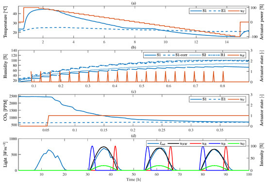 In the following sections, firstly, hardware component selection and electronic interface design are explained followed by software component design and integration of an example control regime. The results of sensor–actuator tests for performance evaluation of the designed system are then presented. Finally, the results of experiments executed for the study of growth of biological organisms are discussed.