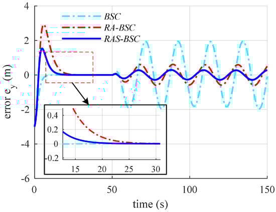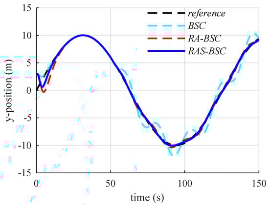 Comparison of y-position tracking error performance between our new controller (RAS-BSC) and existing controllers.