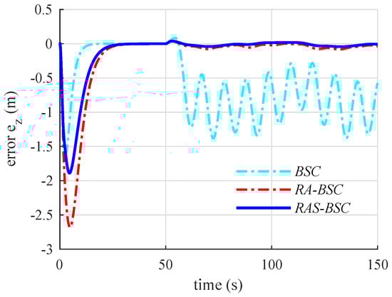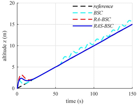 Comparison of altitude tracking error performance between our new controller (RAS-BSC) and existing controllers.