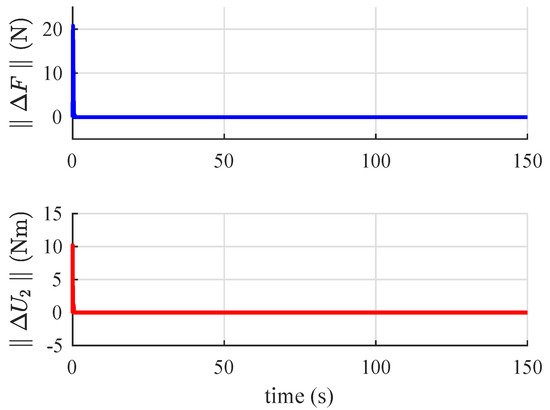 Equations (20) and (21) indicate that increasing the bandwidth parameters and can improve the estimation accuracy of the ESO. However, from Equation (8), it can be seen that any tiny measurement uncertainties of and will be excessively amplified if the bandwidth parameters are too large. Therefore, the bandwidth parameters should be tuned appropriately to make a trade-off between the estimation accuracy and the robustness of the ESO.