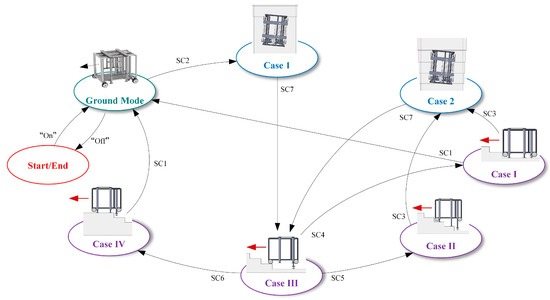 The overall state machine is given in Figure 6. To allow the states in the state machine to be transferred as desired, the switch conditions (SCs) should be designed based on the feedback of the sensors, and the details of such SCs are given in Table 4.