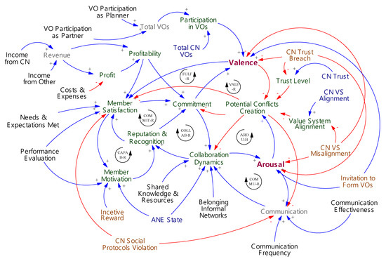 - Ferrada, F.; Camarinha-Matos, L.M. A System Dynamics and Agent-Based Approach to Model Emotions in Collaborative Networks. In Technological Innovation for Smart Systems; Camarinha-Matos, L.M., Parreira-Rocha, M., Ramezani, J., Eds.; Springer: Cham, Switzerland, 2017; pp. 29–43. [Google Scholar]