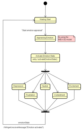 The emotion element is one of the core components of the IME model, which, in turn, is composed of three other components: the Cognitive Appraisal, the Activation, and the Expression Selection, as illustrated in Figure 2.