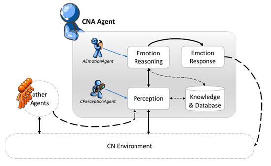 The approach proposed in this research work, considers the system dynamics (SD) and the agent-based (AB) techniques as potential solutions for the modelling and simulation of the C-EMO framework. Therefore, the system dynamics modeling approach is proposed as a potential solution for the Emotion and Emotion Reasoning modules of the IME and ANE model building framework (see Figure 1), while the agent-based model is used to reproduce the CN environment with a focus on the individual member’s emotional influence on the overall emotional health of the CN and vice-versa.