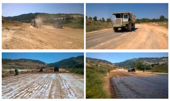 - Bustos, M.; Cordo, O.; Girardi, P.; Pereyra, M. Evaluation of the Use of Magnesium Chloride for Surface Stabilization and Dust Control on Unpaved Roads. Transp. Res. Rec. 2015, 2473, 13–22. [Google Scholar] [CrossRef]