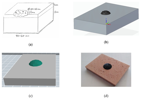 The methodology followed during this work has been the following (Figure 1): (i) in a first phase, it was decided which lesions were going to be modeled, the photographs to be taken as reference were selected, and some preliminary sketches were elaborated; (ii) then, the different lesions were modeled, using a parametric software of 3D design; (iii) the third phase consisted of importing the STL file from the slicing software, and selecting the print parameters necessary to generate the corresponding numerical control program; (iv) the different lesions were then printed; (v) once manufactured, the models were evaluated by a panel of experts; (vi) finally, the models were uploaded to an STL file-exchange platform.
