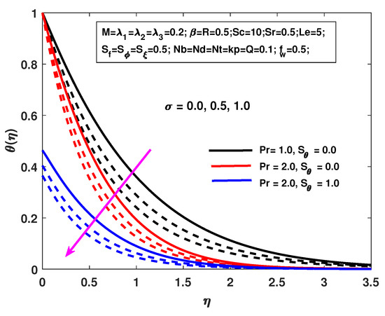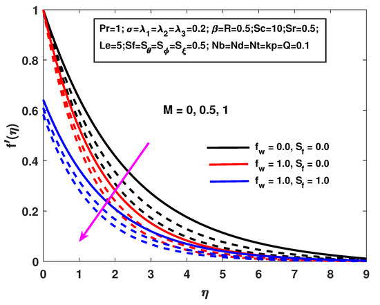 Usually, the stream function is defined as and that the Equation (1) is satisfied. We introduce similarity transformations to solve the above equations (see [25,26]):