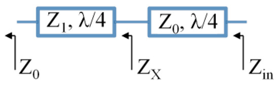 Non-sequential cascaded λ/4 impedance transformers according to Equation (1).
