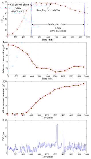 - Xiao, J.; Shi, Z.P.; Gao, P.; Feng, H.J.; Duan, Z.Y.; Mao, Z.G. On-line optimization of glutamate production based on balanced metabolic control by RQ. Bioproc. Biosyst. Eng. 2006, 29, 109–117. [Google Scholar] [CrossRef]