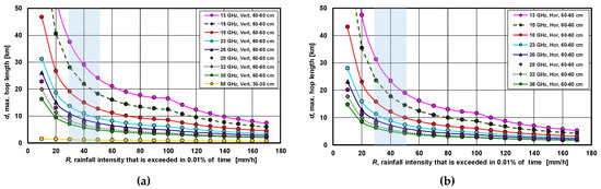 - Rec. ITU-R P.838-(0)-3. Specific attenuation model for rain for use in prediction methods. In P Series, Radiowave Propagation; International Telecommunication Union: Geneva, Switzerland, (1992)–2005. [Google Scholar]