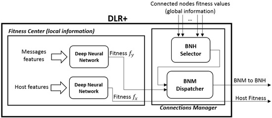 The general architecture of the neural networks used in DLR+ was presented in detail in Section 4.2. As noted, all of the parameters were left as variables, meaning that they can be further adjusted in future versions as desired. The neural networks considered in this work are deep feed forward neural networks with two hidden layers, which provide the capability to capture complex non-linearities in the system. This way, the networks consisted in an input layer, two hidden layers, and an output layer. As explained in Section 4.2, the number of neurons in the input layers is the number of features to process from each sample in the classification process. For this version of DLR+, for the host’s fitness, eight different features were considered, plus an additional eight features , to help capture nonlinearities, for a total of input features, listed in Table 2.