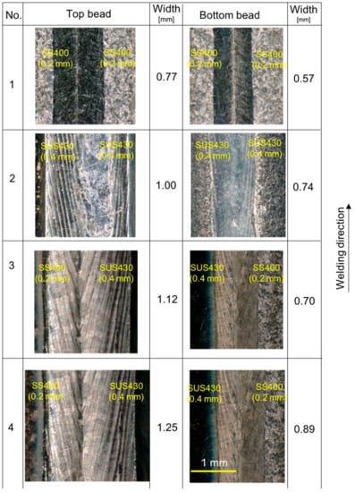 Figure 5 indicates the weld bead appearance in all cases. It can be seen that the weld pool seems be extended in the downward direction due to the opposition of gravity force to the welding direction. As a result, the weld pool boundary looks like a continuous semi- elliptic in the downward direction. It was also observed that no undercut or burn-through were seen in all welding conditions from No.1 to No.4. Moreover, the width of the weld bead was stable from starting welding until ending welding in all cases.