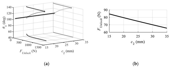 The spring stiffness k and the original spring length lu directly affect the magnitude of the spring force. Different stiffnesses and original lengths result in diverse bifurcation points of this mechanism, thus affecting the magnitude of the unlocking force.