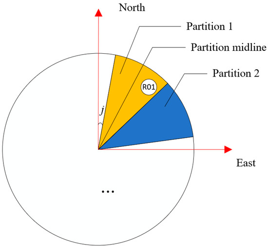 Step 4: Rotate the midline of each partition at the same time according to a certain angle () to form a new dividing situation of the sky. Repeat steps 1–3. The scheme with the minimum absolute value is chosen as the final satellite selection scheme. The mathematical equation is as follows.