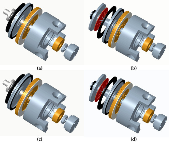 In the same way, stresses of the four motor friction plates are obtained from the stress cloud diagrams, respectively, 4.66 MPa (TRUM-1), 3.54 MPa (TRUM-2), 6.06 MPa (TRUM-3) and 3.84 MPa (TRUM-4). None of them exceeds the yield strength of the friction material (55 MPa). However, it can be found that the maximum stress of the friction plate of motors with the disc spring is smaller than those without the disc spring, further verifying the protection of the disc spring to the parts in the TRUMs.