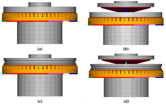 Finite element (FE) model mesh of the TRUMs: (a) TRUM-1; (b) TRUM-2; (c) TRUM-3; (d) TRUM-4.